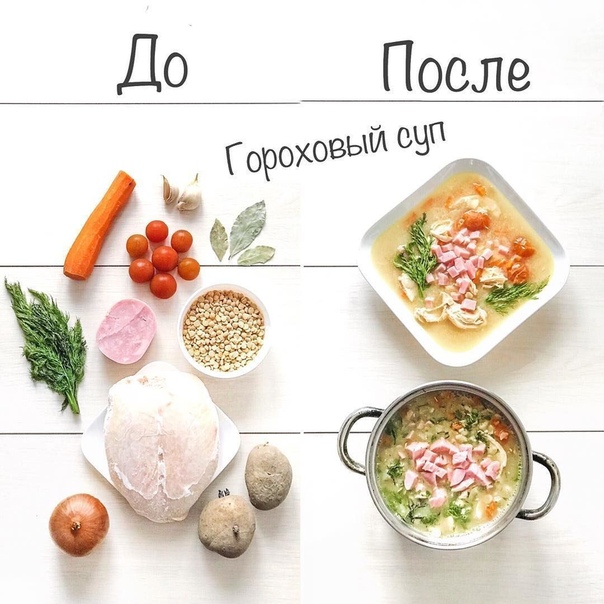 Гороховый суп КБЖУ на 100 г: 69 / 7 / 2 / 6КБЖУ всего: 1007 / 95 / 30 / 91Ингредиенты 4-5 порций:Показать полностью…куриная грудка на кости 350 г вместе с костью или филе 250 гветчина из птицы 90 г (можно без нее)горох 90 гсредняя морковьсредняя луковицакартофель 200 гпомидорки черри 7 штуколивковое масло для жаркичеснок 2 зубчикапучок петрушки или кинзылавровый лист? Горох залить водой и оставить на ночь, чем больше воды, тем лучше. Куриную грудку 3 литрами воды. Варить на среднем огне 20 минут. Лук и морковь обжарить на капле растительного масла в течении 5 минут. Грудку вытащить из бульона, отделить от комти и измельчить на «ниточки» либо мелко нарезать. Горох промыть и опустить в бульон. Варить 20 минут на медленном огне. Добавить обжарку из моркови и лука, а так же нарезанный кубиками картофель. Через 15 минут добавить измельченное филе, томаты черри, чеснок, перец, соль. Еще через 5 минут суп будет готов. Добавить лавровый лист и зелень, даем настояться под крышкой несколько минут. В готовые порции добавить нарезанную кубиками ветчину.?#суп@fitness_recepty
