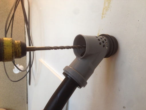 Бюджетная насадка для пылесоса при сверлении стен. Для изготовления нам понадобится канализационный тройник 50/50 х 45° и две манжеты - 50х40 и 50х32. Берём тройник, отпиливаем лишнее ножовкой и сверлим отверстия для притока воздуха сверху. У меня общая площадь отверстий получилась примерно вдвое меньше площади отверстия, в которое входит бур перфоратора. Этого достаточно, чтобы уменьшить забор воздуха спереди - воздушный поток идёт сверху и пыль быстро засасывается в пылесос. Показать полностью… Потом расширяем внутри манжету 50х40 так, чтобы она плотно наделась на переднюю часть трубы (я просто срезал лишнюю резину ножом) и надеваем её до уплотнительного кольца посередине манжеты, таким образом останется свободной некоторая часть манжеты для плотного прилегания к стене. Осталось расширить вторую манжету так, чтобы в неё плотно вошёл шланг пылесоса, на мой Керхер хорошо подошла манжета 50х32, для других пылесосов возможно будет более подходящим другой размер. Насадкой удобно пользоваться, держа её за рукоятку шланга пылесоса. Расходы на материалы - рублей 100 или около того. Есть конечно и несколько минусов - придётся использовать более длинный бур из-за длины самой насадки, придётся держать шланг с насадкой (не всеми перфораторами удобно работать одной рукой, может понадобиться второй человек, который держит шланг), не совсем удобно целиться (хотя всё равно диаметр отверстия достаточный для того, чтобы увидеть метку на стене и установить туда бур), ну и чёрная резина манжеты может пачкать стену (но это не точно. Может быть актуально при сверлении готовой стены с обоями или другой чистовой отделкой)